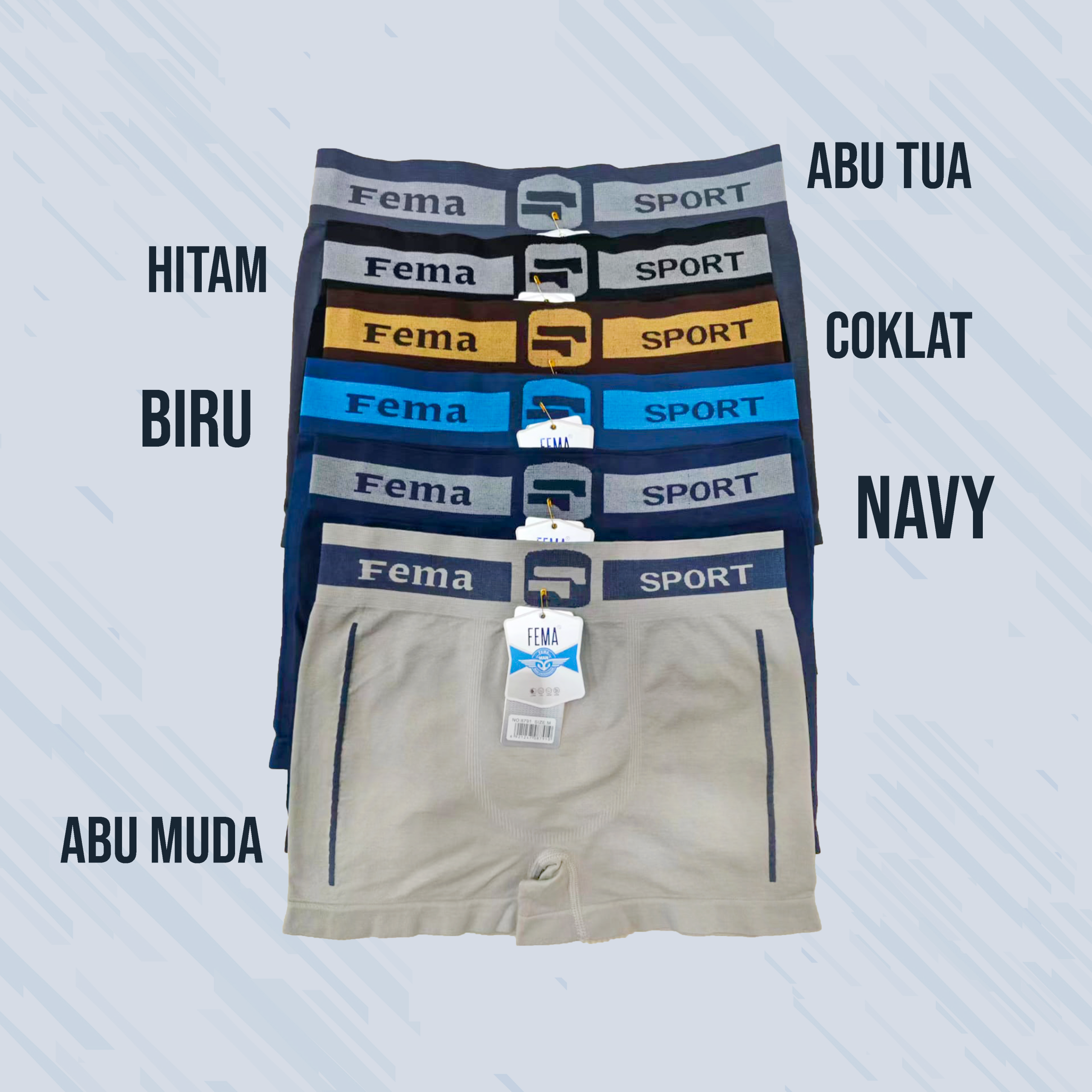 CELANA DALAM PRIA 8791 Motif : Polos Garis Samping, Ban FEMA Sport